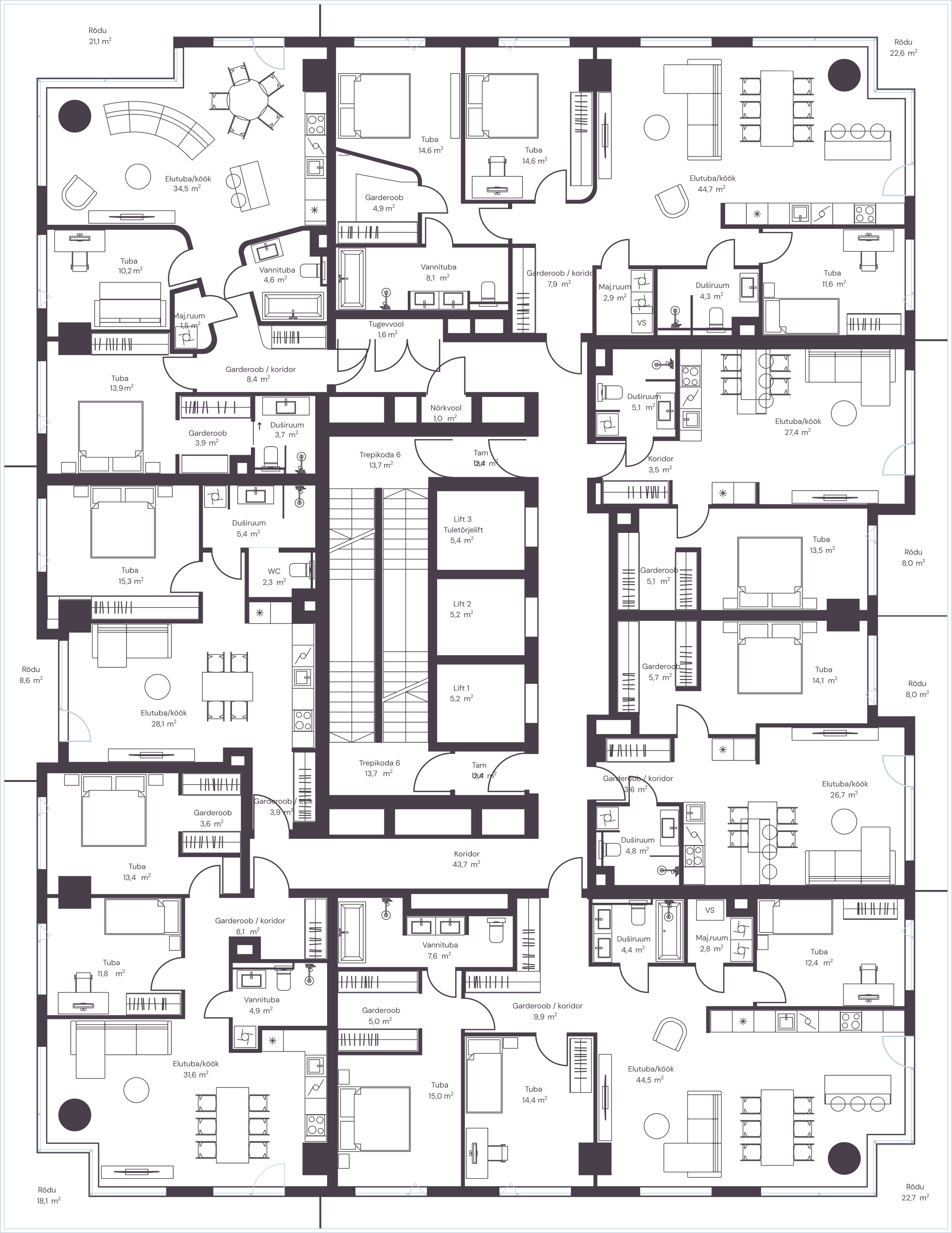 The unique location of Eedu apartments allows for the best the city has to offer – from daily convenience to memorable experiences. Everything necessary and inspiring is just a few steps away.
